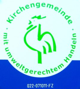 Seit dem 7. Oktober 2011 sind wir als ‚Kirchengemeinde mit umweltgerechtem Handeln‘ zertifiziert und dürfen den ‚Grünen Gockel‘ als Aushängeschild an unserem Gemeindehaus tragen.